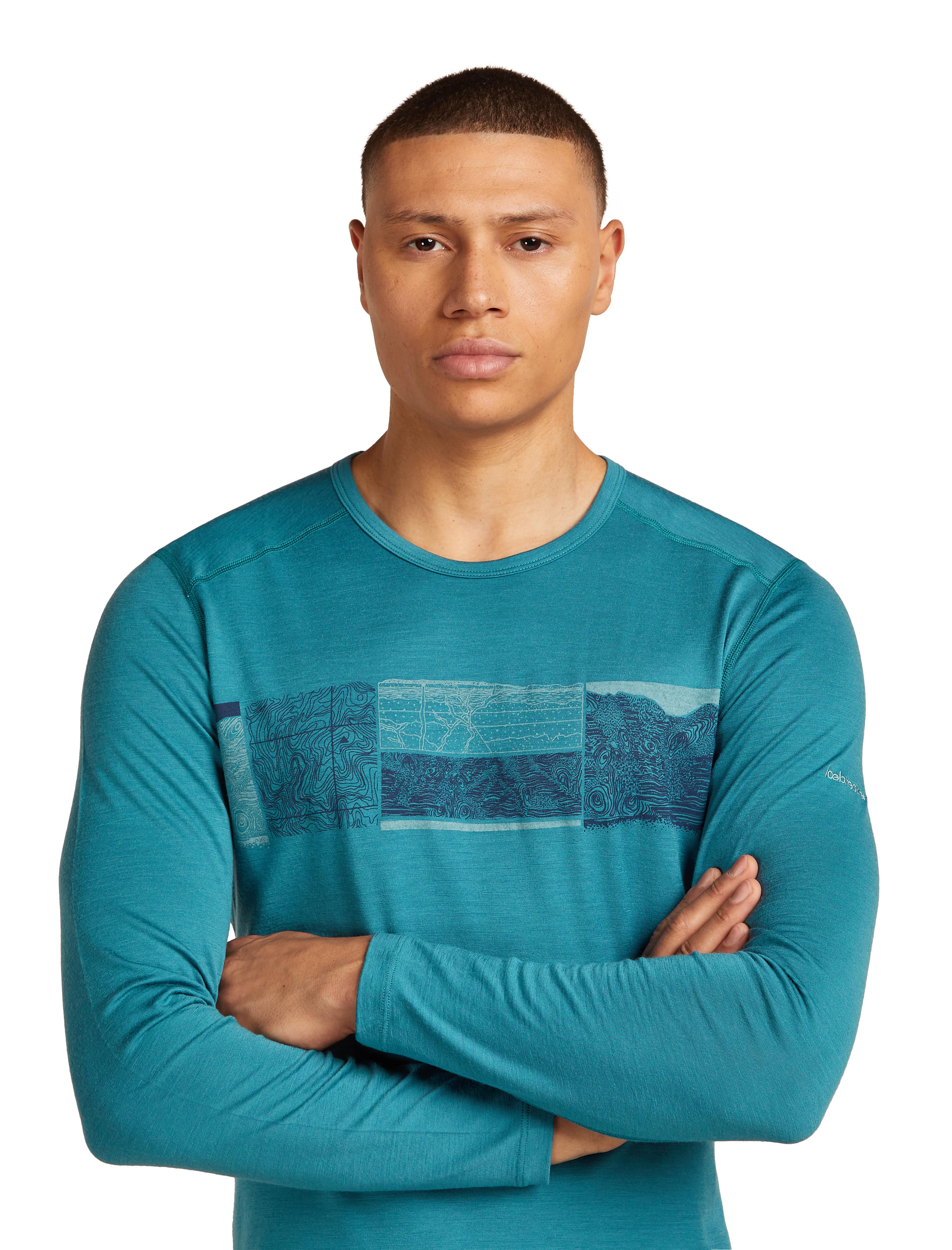 Setting the standard for all others to follow, the 200 Oasis Long Sleeve Crewe Elevation Line is icebreaker's best-selling base layer—a versatile active top for year-round layering and everyday comfort. The original artwork features a unique infographic showcasing elevation lines, topographic maps, and mountain anatomy.