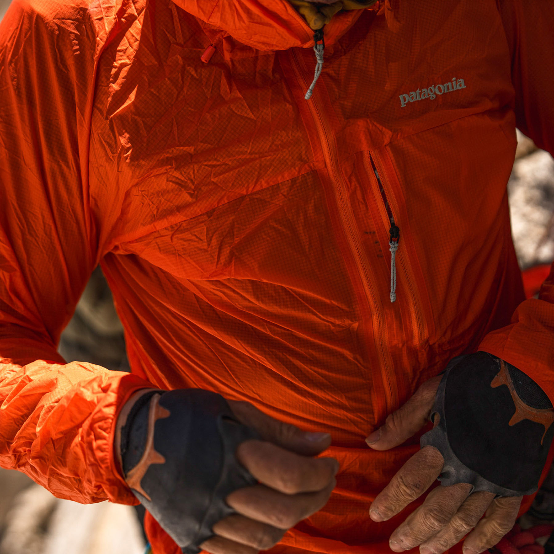 Patagonia’s iconic Houdini Jacket has been reimagined for serious climbers. The Houdini Rock Jacket is wind- and weather-resistant, offering unmatched overhead mobility and a long, slim-fit waist that stays securely under a harness. Engineered specifically for multipitch rock climbing, this jacket is part of the Free Wall Kit, designed for sustained, difficult routes where even the smallest rest restores just enough energy for the send.